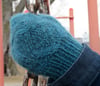 I thought that the stitch pattern also would work well for a pair of mittens, and so, these mittens were born! The mittens are knit from the 1 by 1 ribbed cuff up and the thumb is done with a side-seam thumb gusset. The cable motif continues through the top decreases of the mitten.