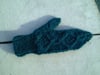 Image 4: A mitten lying palm-up. There is a slipped stitch pattern on the palm.]